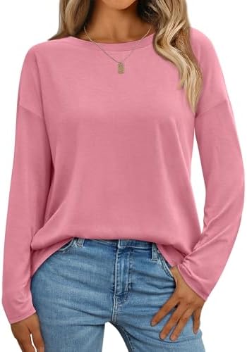 AUTOMET Womens Long Sleeve Shirts Loose Fitted Crewneck Basic Tops Casual Outfits Fall Clothes 2025
