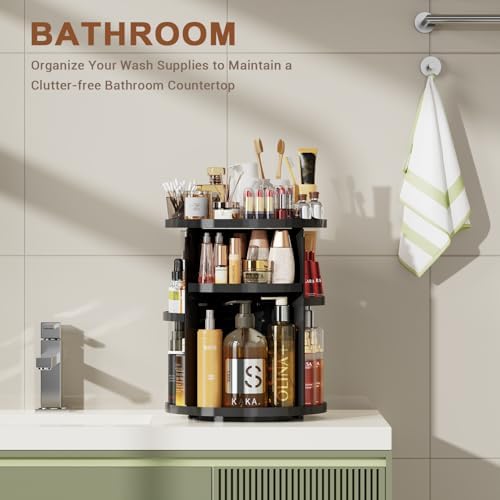 𝟗 𝐃𝐈𝐘 𝐀𝐃𝐉𝐔𝐒𝐓𝐀𝐁𝐋𝐄 𝐇𝐄𝐈𝐆𝐇𝐓𝐒: With 9 DIY adjustable levels, this makeup organizer allows you to customize the tray height to accommodate a variety of item sizes, ensuring it fits virtually almost any skincare or beauty product for a perfect organization solution. 𝟑𝟔𝟎° 𝐒𝐈𝐋𝐄𝐍𝐓 𝐑𝐎𝐓𝐀𝐓𝐈𝐎𝐍: Designed with a chassis featuring 6 quiet steel balls, this makeup organizer ensures a smooth and silent rotation. Enjoy effortless access to your items from any angle, thanks to its unlimited spinning functionality. 𝐄𝐀𝐒𝐘 𝐓𝐎 𝐈𝐍𝐒𝐓𝐀𝐋𝐋 & 𝐂𝐋𝐄𝐀𝐍: This skincare organizer offers hassle-free installation & detachment and effortless cleaning. Snap it together in seconds and enjoy the convenience of washable materials for easy maintenance. 𝐋𝐀𝐑𝐆𝐄 𝐂𝐀𝐏𝐀𝐂𝐈𝐓𝐘 & 𝐄𝐀𝐒𝐘 𝐓𝐎 𝐀𝐂𝐂𝐄𝐒𝐒: Designed with intelligent partitions, this vanity organizer can hold an extensive array of beauty essentials, including MAKEUP BRUSHES, PERFUMES, NAIL POLISH, LIPSTICK, EYESHADOW, AND SKINCARE ITEMS. It ensures that all your necessities are neatly organized and easily accessible. 𝐕𝐄𝐑𝐒𝐀𝐓𝐈𝐋𝐄 𝐀𝐍𝐃 𝐒𝐓𝐘𝐋𝐈𝐒𝐇: This organizer fits perfectly in vanity, bathrooms, dressing tables, bedrooms, makeup rooms, and professional salons, bringing order and elegance to your beauty routine. It's also an ideal gift for Mother's Day, Christmas, New Year's, birthdays, and other special occasions.