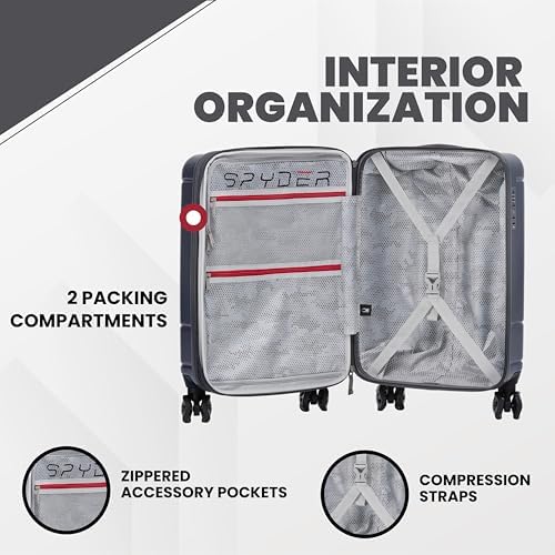 Spyder Carve 20 Inch Expandable Hardside Upright Suitcase with 360° Spinner Wheels, TSA Approved Lock, Gray