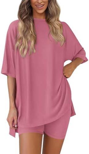 PRETTYGARDEN Women's Two Piece Lounge Set 2025 Summer Casual Oversized Shirts Biker Shorts Matching Airport Travel Outfit