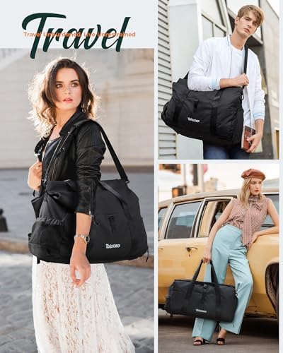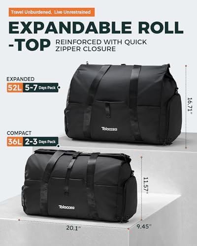 Tolaccea Gym Duffel Bag, Travel Bags Foldable Sports Duffle with Shoe Compartment & Wet Pocket, Lightweight & Water-Resistant, Perfect for Workout, Weekender Overnight & Carry-On Expandable