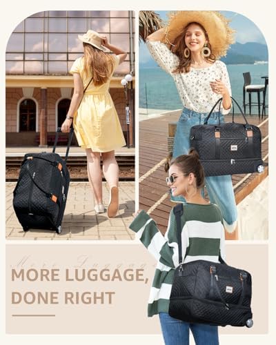 Rolling Duffle Bag With Wheels -50L Large Weekender Bag for Women with Shoe Compartment,Carry on Wheeled duffel Bags for Overnight Business Trips Gym Hospital Black
