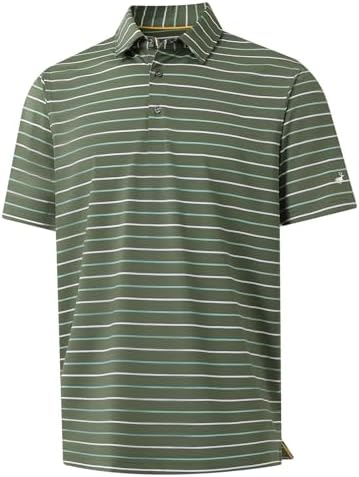 【Material】: These golf shirts for men are made of quality polyester and spandx fabric, providing you with lightweight soft, smooth and skin-friendly feeling, ensuring optimum comfort throughout the day 【Properties】: Carefully selected fabric for our polo shirts to provide optimal moisture-wicking and 4-way stretch properties, keeping you dry and cool throughout your game, meanwhile offering great range of motion when you swing the club 【Design】: The three tones stripe adds a stylish touch for our men's golf shirts, effortlessly blends classic elements with modern trends. Feature with button closure and no curl collar keep good shape, well-made stitching, easy care 【Multiple Colorways】: The variety of colorways available in our mens polo collection allows you to express your personal style. Choose from bold and vibrant hues for a statement look, or opt for more subtle tones for a refined and understated appearance 【Occasion】: Our men's polo shirts short sleeve perfect for golf, tennis, and other outdoor sports activities. Also it can be a business or daily casual shirts. Great gifts for dad, families, friends or boyfriends #233,838 in Clothing, Shoes & Jewelry ( ) #265 in