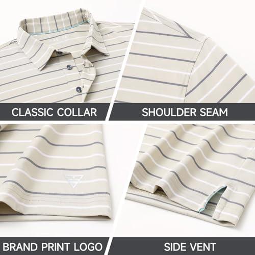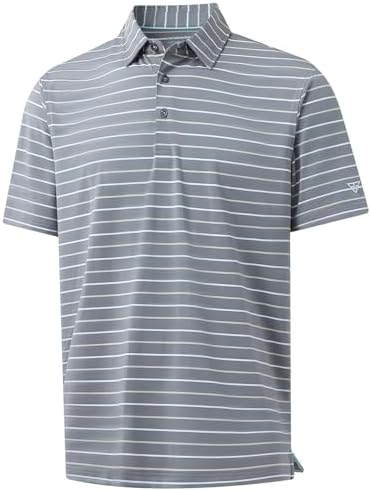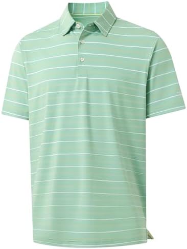 MATERIAL: Our mens golf shirt is made of high-end polyester spandex material, which is soft, skin-friendly, lightweight and breathable. Also it can effectively wick away moisture, keeping you cool and dry in hot weather conditions STRETCH: This polo shirt is designed with comfort and flexibility in mind, made from a quality 4-way stretch fabric, whether you are a beginner or a seasoned golfer, this golf polo shirt allows for a full range of motion during swings and putts FEATURE: Designed with yarn dyed stripe for our men's polo shirt short sleeve, complemented by the classic three button collar, adding a touch of elegance and fashion to your sportswear collection, making it an ideal choice at any time OCCASIONS: Not just limited to golfing occasions, the versatility of the golf polos for men dry fit make it suitable for different events, such as family outings, party, or even business casual settings, also good gift for dad, friend, boyfriend SIZES: We understand the importance of finding the right fit, which is why our mens casual polo shirts comes in a variety of sizes, from S to 3XL, it cater to all body types. Welcome to click on the top of the shop to view more our mens polo