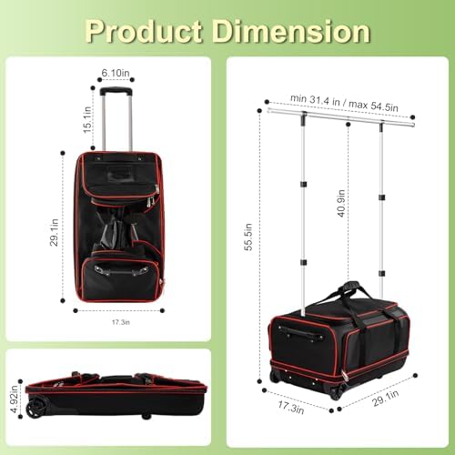 Jiang&Rong Dance Bag with Garment Rack, 28" Garment Duffle Bag with Wheels for Dance Performances, Collapsible Costume Rolling Garment Bag for Travel, Costume Bag Luggage, Travel Bag, Closet Suitcase