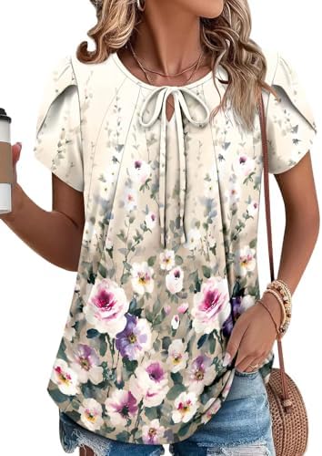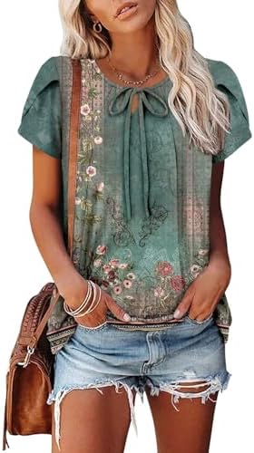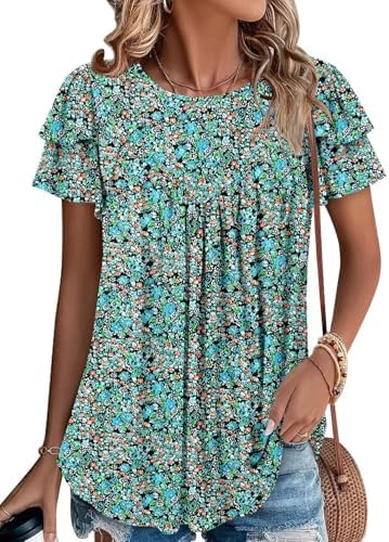Features: Solid color, oil painting, boho Paisley print or floral print, round neck or tie neckline, double ruffled short sleeve or petal short sleeve, pleated front. 3 blouse styles to choose from. Bright colors and loose fit. Women of all sizes can easily pull off fitted shirts. Fabric: Solid-color tunic tops are made of 35%COTTON,60%POLYESTER,5%SPANDEX; floral printed shirts are made of 90%POLYESTER,10%SPANDEX. Comfortable and soft fabric with elastic, lightweight and skin-friendly, breathable and cool material for summer. Match: Women's short sleeve tops come in a variety of of styles, and can be paired with shorts, skirts, slacks, jeans, sneakers and heels for a trendy casual look. It is an essential item in the wardrobe of women and girls. Occasion: Suitable for everyday wear in spring, summer and fall. It is a great choice for dating, street, shopping, office, school, home, weekend dinners, parties, holidays, travel, outdoor sports and any other occasion. Attention: Please refer to our brand size chart and select your fit size according to it.(NOT AMAZON SIZE CHART). #27,900 in Clothing, Shoes & Jewelry ( ) #324 in