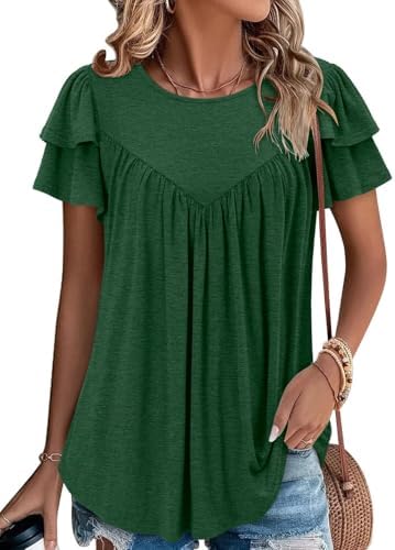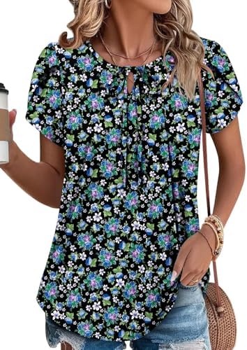 Magritta Women’s Shirts Dressy Casual Short Sleeve Blouses Loose Fit Pleated Front Summer Tunic Tops