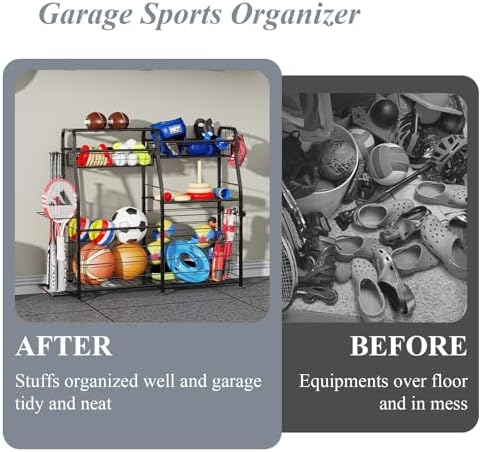 GREAT SPACE SAVER: Tired of messiness? Get this garage sports equipment organizer to sort stuff orderly rather than box or all over the floor, adding to the cleaniless of your garage. Featured compartments with great storage capatity helps save a lot of space in garage. EASY TO ASSEMBLE: The sports equipment organizer comes with clear instruction guide to help you put it together. Step by step guide for effortless installation to help storage sports equipment easily and quickly. MULTIPLE USAGE: Also get toys from your children or grandkids organized, free of mess with toys lying around in the garage. Featured with large storage capatity, it is also a great organizer for toys, or pooling toys, rackets, hats or bat etc. [ELASTIC ROPE DESIGN] This garage rack features an elastic rope design. The innovative design allows for maximum storage capacity and taking items out easily. Whether it's sports equipment, toys, or other items, this elastic rope design ensures efficient storage and easy retrieval. CAREFULLY CRAFTED: The organizer is carefully crated with smooth surface to prevent organized stuff from scratches. Please let us know if you have questions. We will try our best to address your concerns.