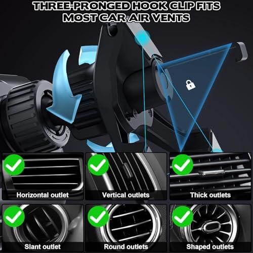 2024 New Mobile Phone Holder: The newly launched phone holder is a multifunctional accessory that can be used as both a car charger and a magnetic phone mount. Its innovative design allows you to easily free your hands while driving, securely and stably holding your phone in the car. The package includes a car wireless charger, a vent clip holder, a Type-C to USB-C charging cable, and a user manual. Fast and Efficient Charging: This 15W wireless car charger features a brand new dual-coil design, making it compatible with 98% of smartphones for more efficient wireless charging, allowing devices to charge at maximum speed. Additionally, it supports one-handed operation, enabling users to easily place and remove their phones. The charger's screen also has an intelligent 90° rotation feature, combined with one-button operation, to meet the usage needs in various scenarios. One-Button Rotation: This car phone holder features a one-button smart rotation function. Users can simply press the button to rotate their phone 90°, and pressing it again will return it to its original position, allowing for easy switching between vertical and horizontal placements. Additionally, while charging, the holder enables electric 360° rotation, making operation very convenient and manageable with just one hand, greatly enhancing usability. Three-Point Force-Bearing Design: This car mount features a triangular mechanical stable structural design that utilizes the principle of gravitational linkage to clamp and lock the phone securely, forming a sturdy structure with three points of force. Even under complex road conditions, it can withstand challenges, ensuring that the phone remains stable and is not easily dropped. Versatile Design: The 15W Wireless Car Charger not only serves as a wireless car charger but also functions as a stand for smartphones or tablets. It is a 2-in-1 automatic rotating phone holder that is compatible with various smartphone and tablet devices, supporting multiple product sizes. Additionally, this mount fits 99% of car air vents, and its triangular structure design ensures excellent stability.
