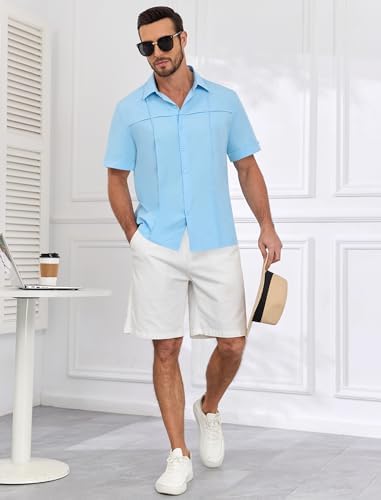ZAFUL Mens Button Down Shirts Casual Short Sleeve Summer Regular Fit Beach Wedding Dress Shirt